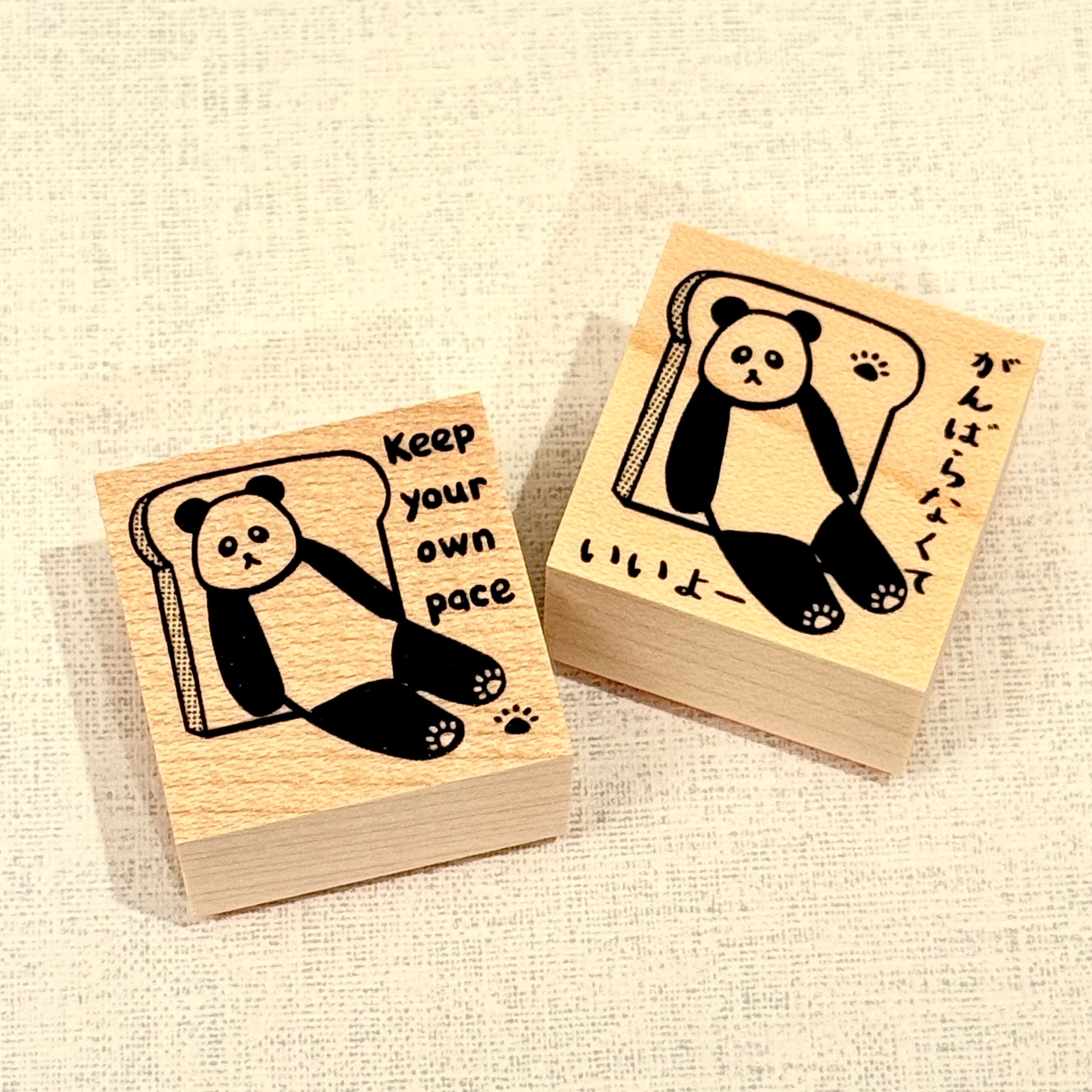 食パンの壁に寄りかかりながらがんばらなくていいよーと呼びかけるパンダ