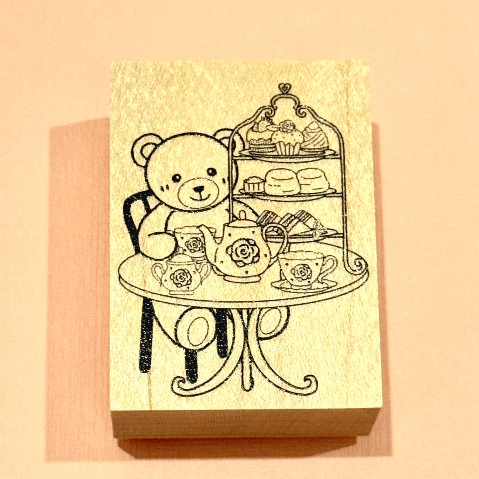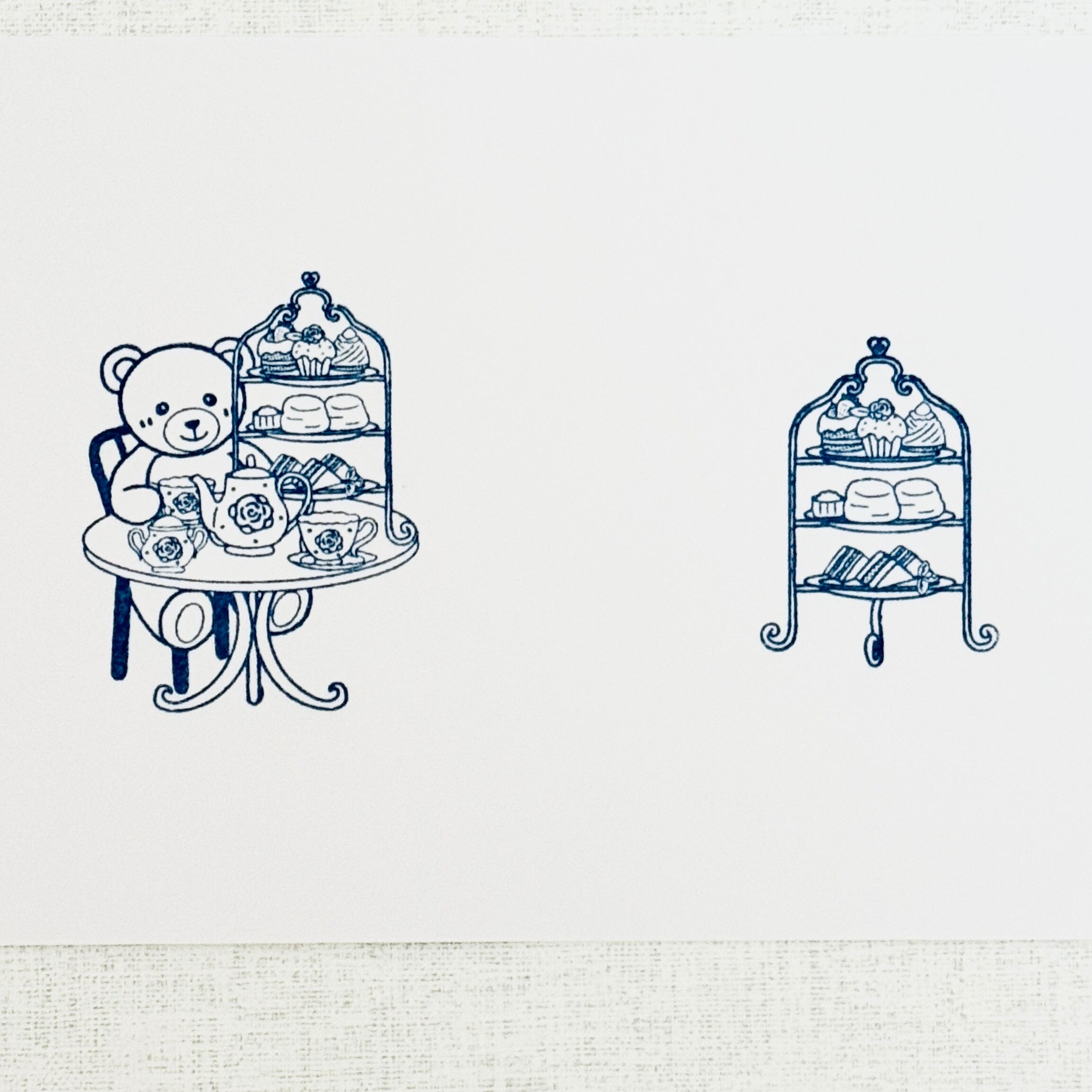 くまちゃんがアフタヌーンティーを楽しんでいるはんこです