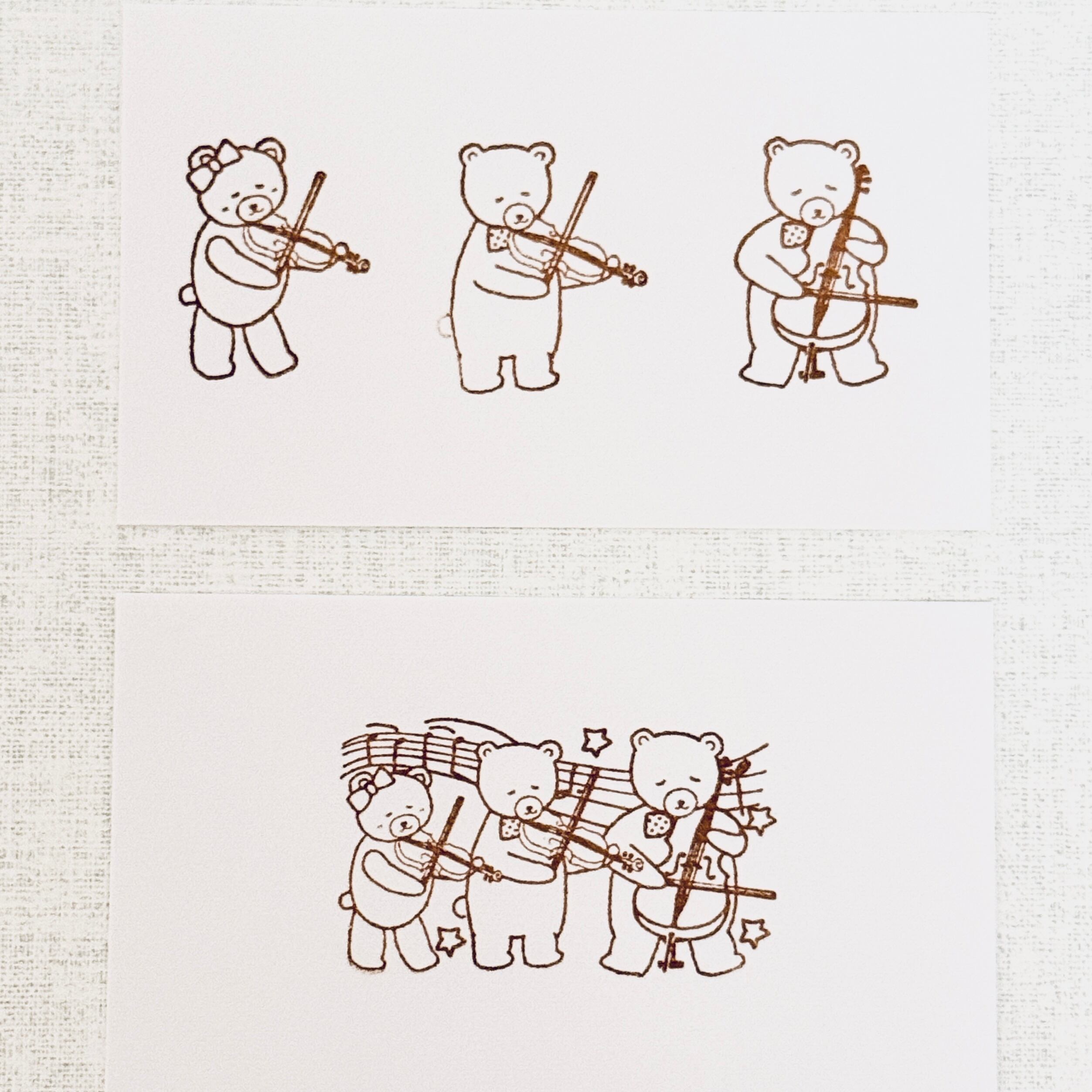 くまさん3兄弟がバイオリンとビオラとチェロで三重奏を演奏中〜♪