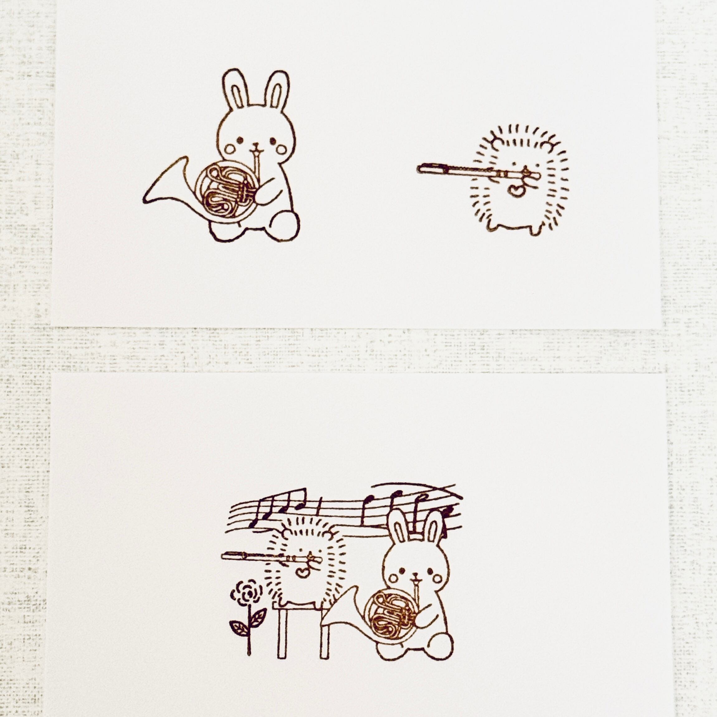 うさちゃんのホルンとはりねずみさんのフルートでニ重奏を演奏中〜♪