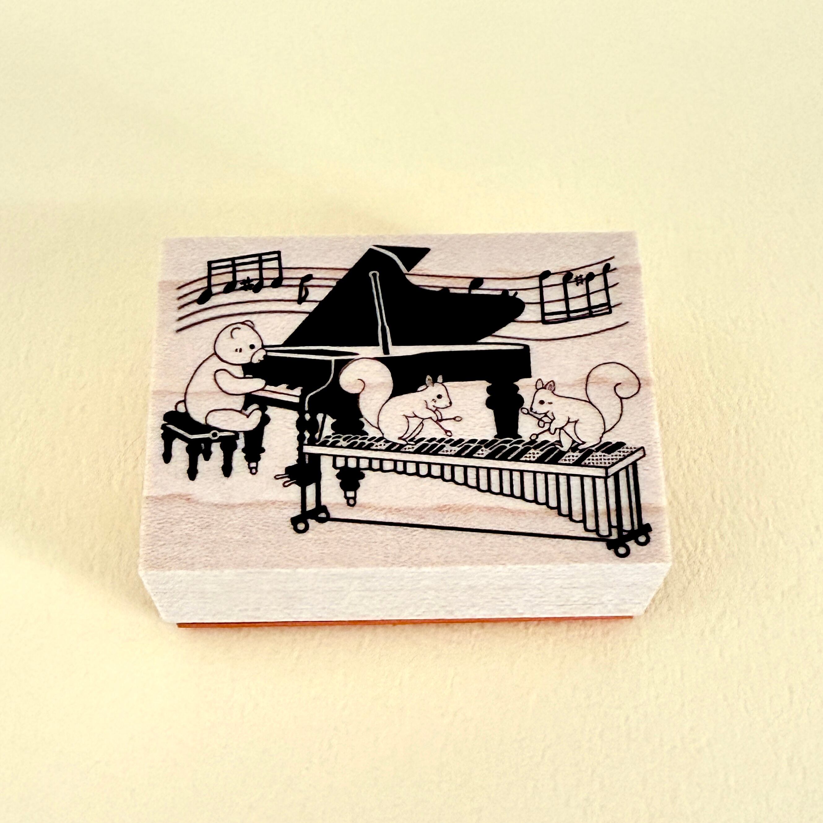 くまちゃんのグランドピアノとのりすさんのマリンバでニ重奏を演奏中〜♪