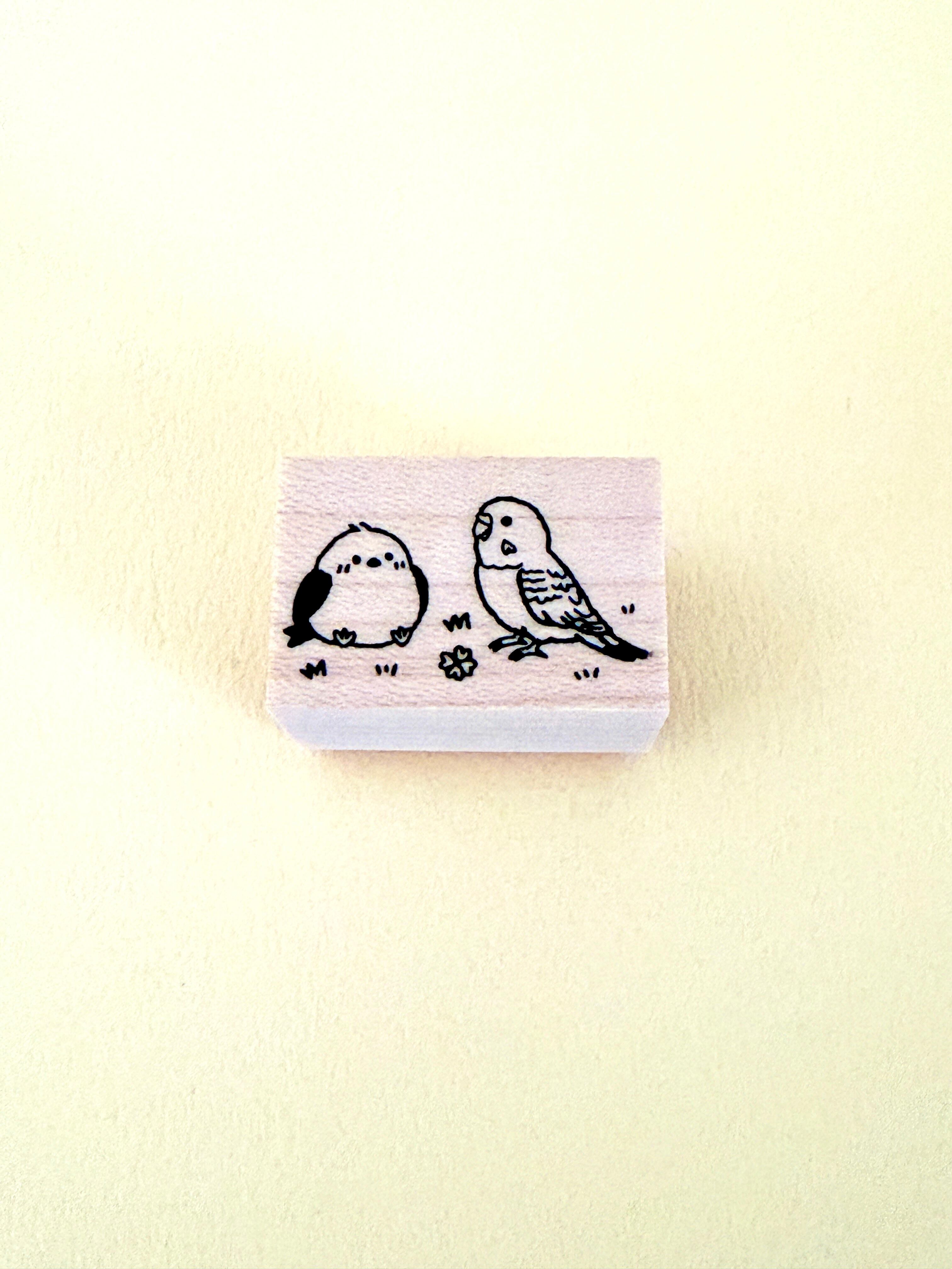 【はんこ】仲良しシマエナガとセキセイインコ | 鳥雑貨・手帳デコ | budgie snow fairy